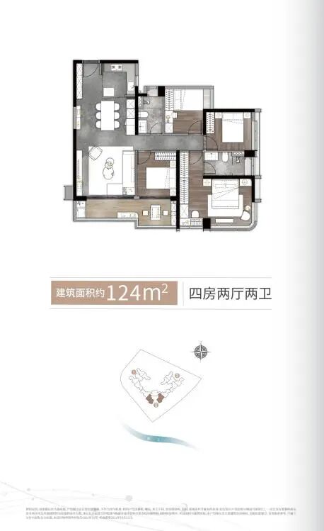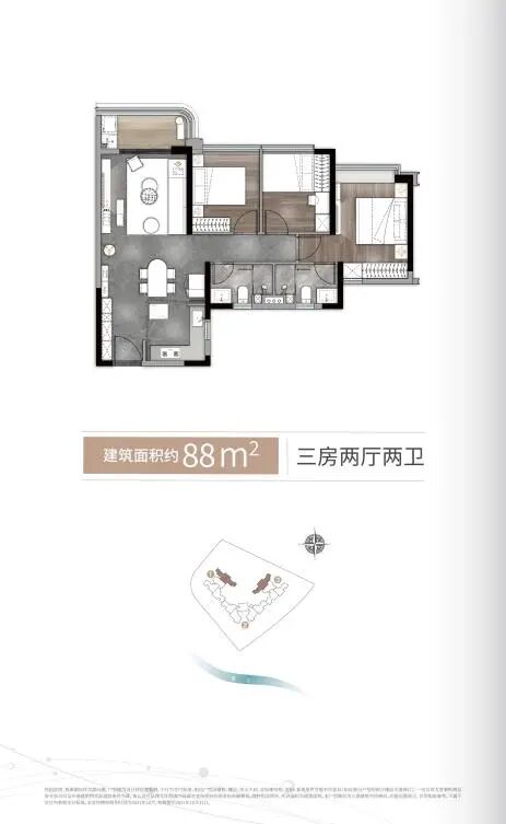 观澔府项目位于石岗路东侧,南望珠江,北眺广州塔。整体由3栋36层的超高层住宅组成,共有三个户型分别为88平三房,118平四房和124平四房,共385户。