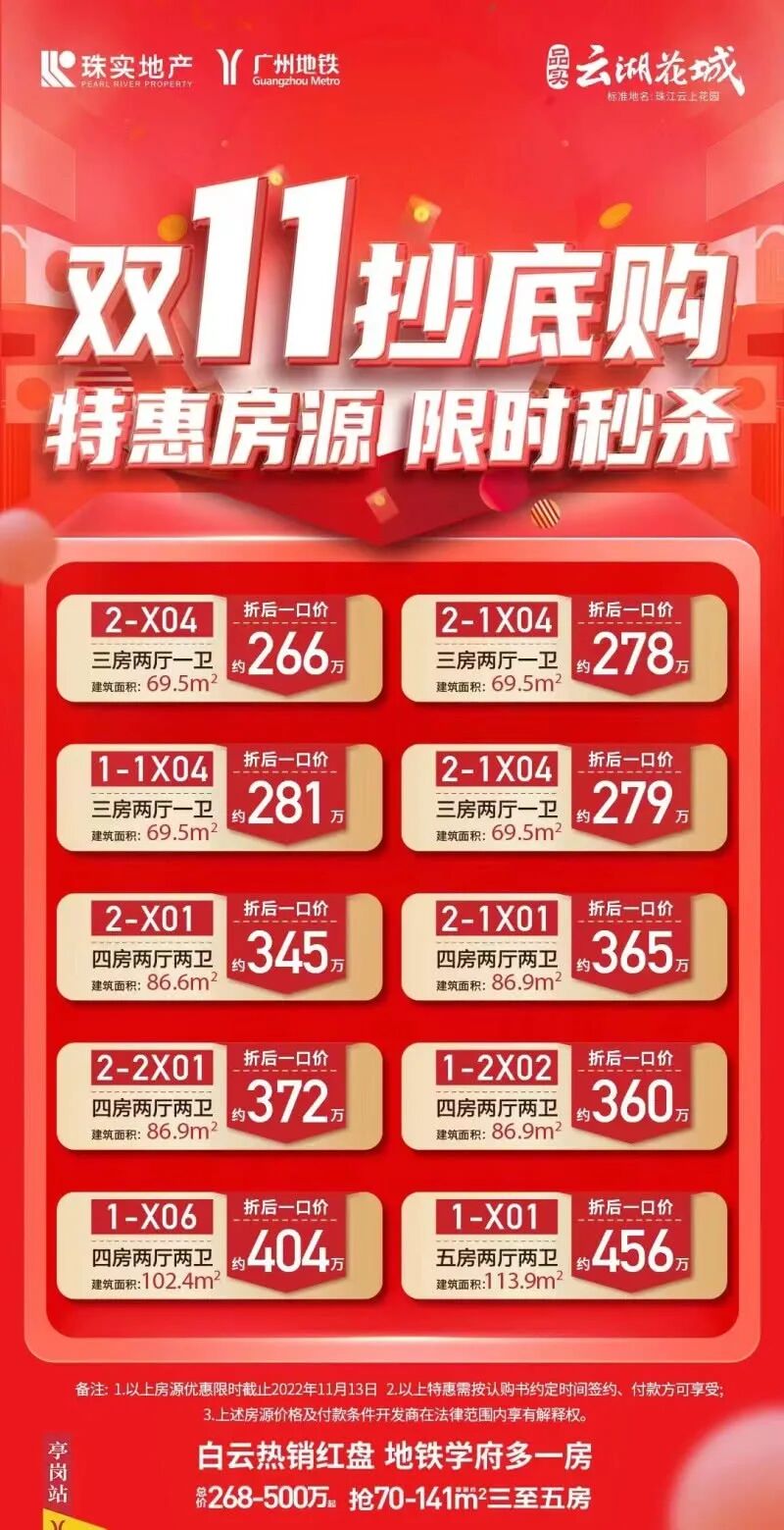 品实云湖花城双11抄底价,折后一口价266万起!