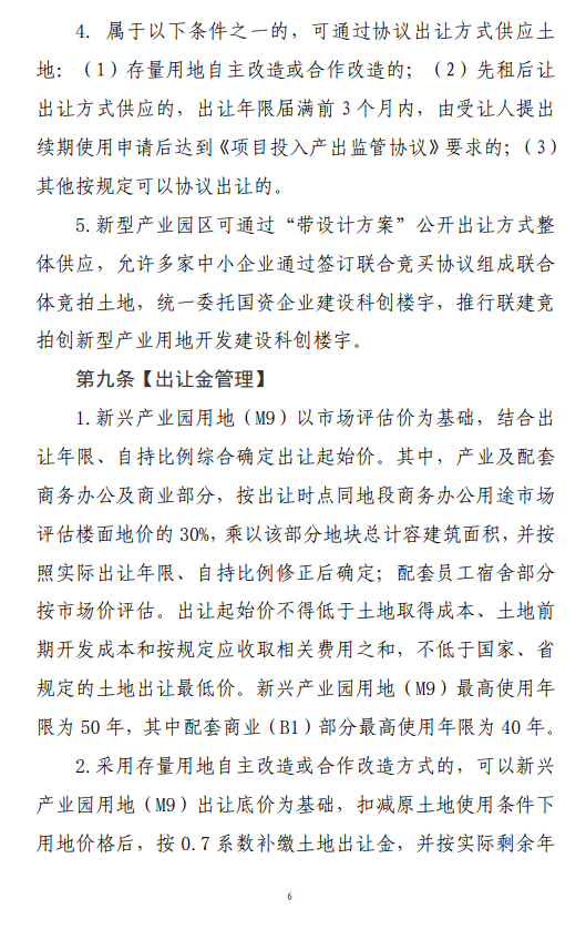 调整后的出让金计价方式与广州市新型产业用地(M0) 有一定衔接性,有利于鼓励投建方平衡地块内产业及配套功能关系,从一定程度上防范“地产化”风险,且有助于盘活存量用地。