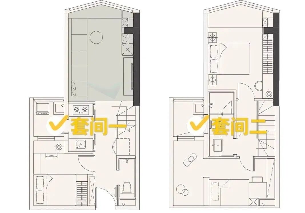 其中的58㎡和57㎡的Loft公寓,业主可以通过加门间隔改为双钥匙和三钥匙设计,而且每个套间都是有卫生间和采光窗。