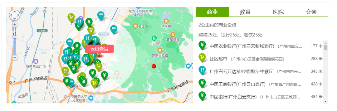 市场有隆康花园市场、柯子岭市场;银行有建行、中行、工行、中国邮政;购物有万达广场、绿地*、5号停机坪等商业综合体;公园有儿童公园、白云山风景区云溪公园、雕塑公园等。