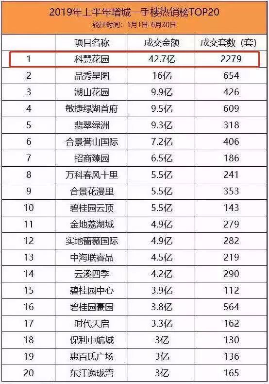 根据克而瑞数据显示,2019年上半年,科慧花园总共卖了2279套,碾压群雄,夺得销冠宝座,销售金额更是高达42亿元,是增城其他楼盘的好几倍,更是碾压地铁21号线沿线其他楼盘。