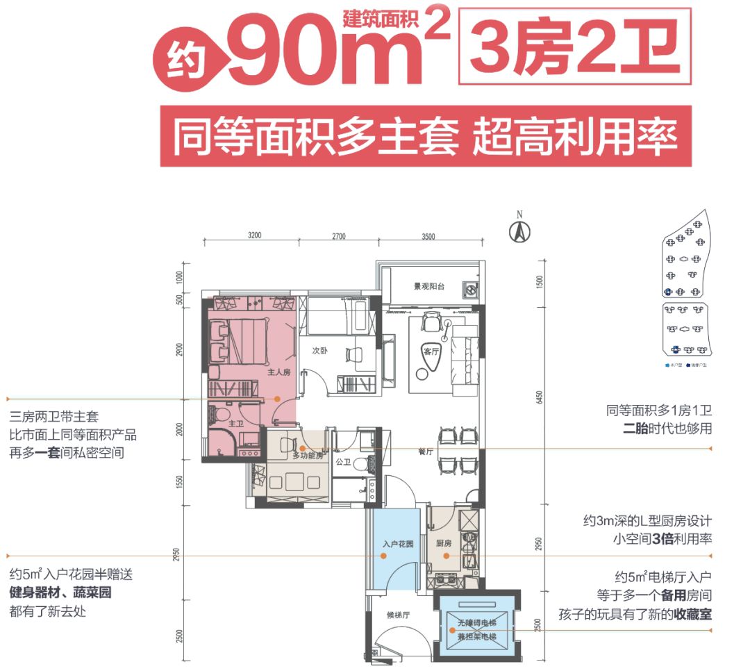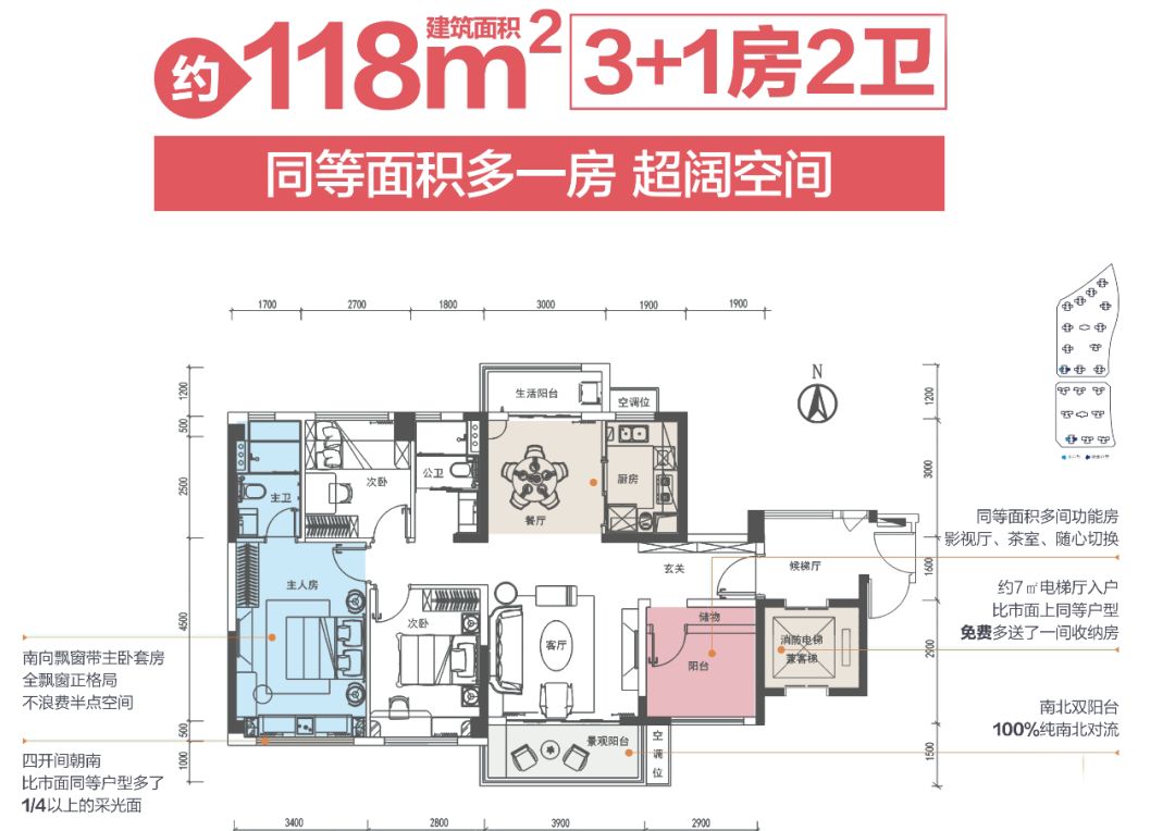 南北对流双阳台,赠送面积达10.9㎡,主卧带带南向大飘窗+独立卫生间,无论是从三口之家到二胎时代的幸福升级,还是三代同堂的其乐融融,都能满足您未来家庭结构的变化需求,属于优质的改善型住房!