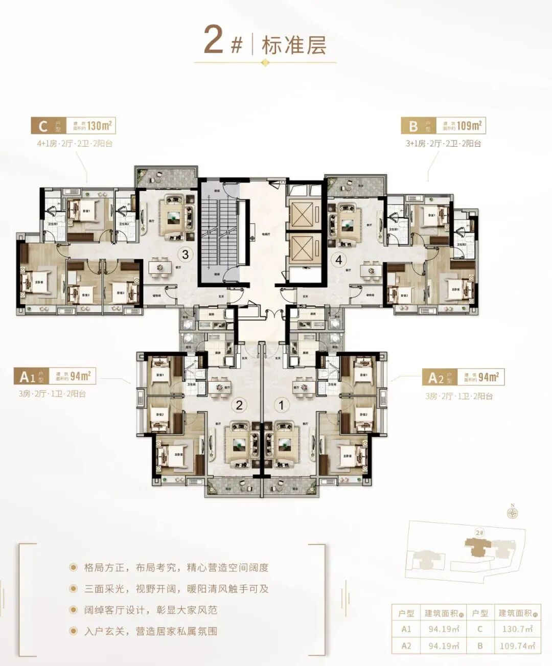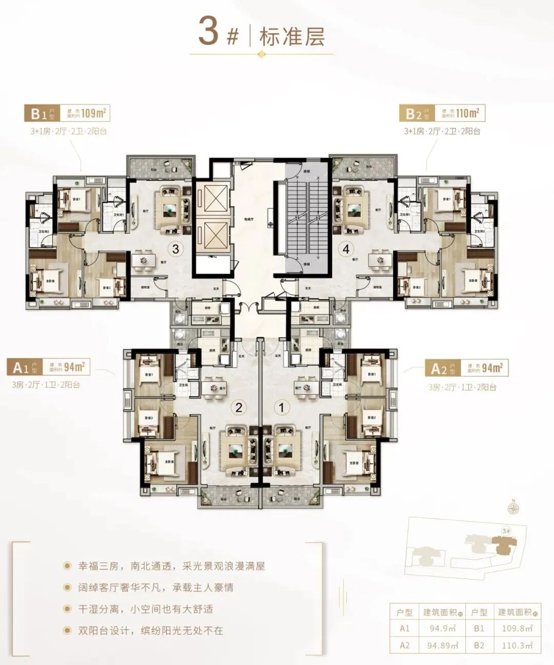 其中,1栋、3栋楼高31层,2栋为32层,2栋与3栋连体设计,住宅层高为3米,2梯4户设计。