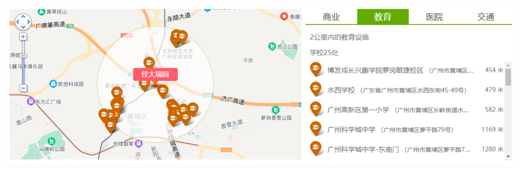 学校:中小学市二中、二中苏元中学、玉山学校、北师大广州实验学校、科学城中学、玉岩中学等。