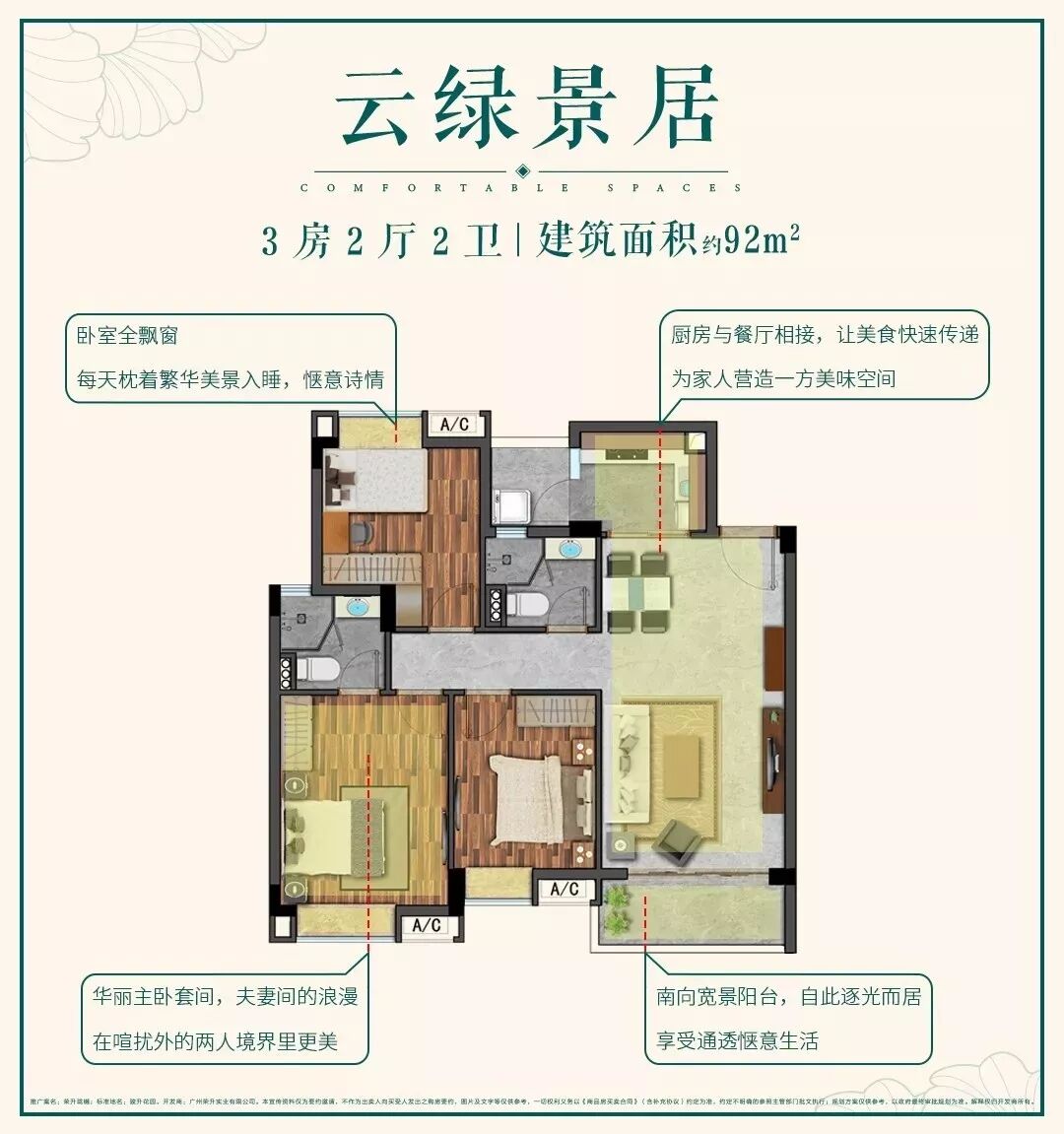 方正格局厅出阳台设计,卧室全飘窗设计,超高使用率空间相当于市面100多㎡产品,金牌户型当之无愧。