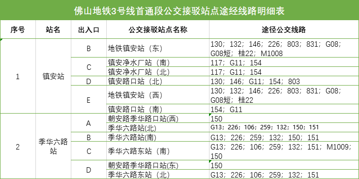 12月24日上午,佛山市轨道交通局党组书记、局长陈卫东透露,12月28日中午佛山地铁3号线*通段将正式开通运营。佛山地铁3号线南起顺德港站,北*佛科院仙溪校区站,全线共设置38座车站,线路长约69.5公里。它是目前佛山*长的地铁线路,沿线覆盖佛山人口密集经济发展强劲的镇街。即将开通的3号线*通段从镇安站到顺德学院站,线路长40.72km,共设置22座车站,途经禅城、顺德两区。12月12日,3号线*通段工程顺利通过了初期运营前安全评估,完成了线路开通前*重要的一次测试检验,进入开通初期运营倒计时阶段。3号线*通段开通后,将把佛山更多*片区纳入地铁辐射范围,与广佛线、2号线一期、广州地铁7号线西延顺德段初步形成佛山轨道交通的骨干线网。其中,3号线*通段可在湾华站与佛山地铁2号线实现换乘,在北滘公园站与广州地铁7号线西延顺德段实现换乘,在东平站与广佛线实现换乘。 3号线作为省*项目和贯通佛山南北的主干线,是佛山市在全面掀起*项目建设热潮中的一项*民生工程,对佛山轨道交通网格升级、市民出行效率提升和锚固佛山轨道骨架具有重要意义。配套公交接驳线路方案佛山地铁3号线*通段接驳公交站点88个,地铁沿线配套站点接驳距离基本控制在100m,困难情况下不超过200m。规划接驳公交线路共99条,新增4条公交线路,局部调整22条线路;31条线路增加停靠站点,保持现状线路42条,其中新增m1008接驳线,接驳广佛线桂城站和三号线镇安站,加强广佛线和三号线衔接。公交接驳站点途经线路明细表 来源:广州房产之家