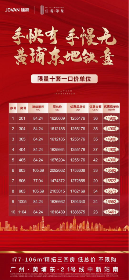 转眼间,又到2021年底了,*近小编了解到,各大开发商为了冲刺业绩,让年底的报表好看一点,资金回收速度快一点而动作频频,纷纷展开了打折促销的营销策略,推出各种的“一口价”、“特惠单位”等!据有关消息,继南沙、增城等外围新区大范围降价后,天河、海珠、荔湾、白云、黄埔等*城区有部分楼盘,也纷纷加入了战局,而且有不少楼盘出现了大幅度降价,更有楼盘总价直降超80万!究竟是哪些楼盘?赶紧跟着小编来一探究竟吧!