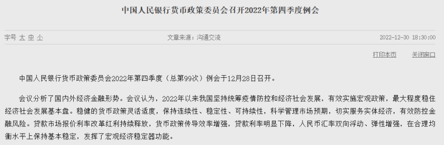 日前,人民银行货币政策委员会召开2022年第四季度(总第99次)例会。