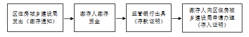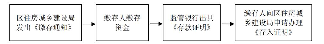 缴存人按时、足额缴存复建安置资金后,监管银行向缴存人出具《复建安置资金存款证明》(以下简称“《存款证明》”),缴存人凭该《存款证明》和无条件银行履约保函向区住房城乡建设局申请办理《复建安置资金存入证明》(以下简称“《存入证明》”)。