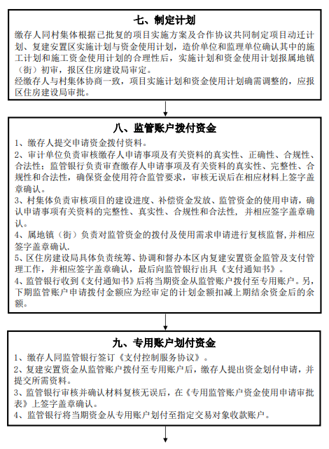 (三)按照审批要求,完成当期复建安置资金的拨付或划付,确保监管资金专款专用;
