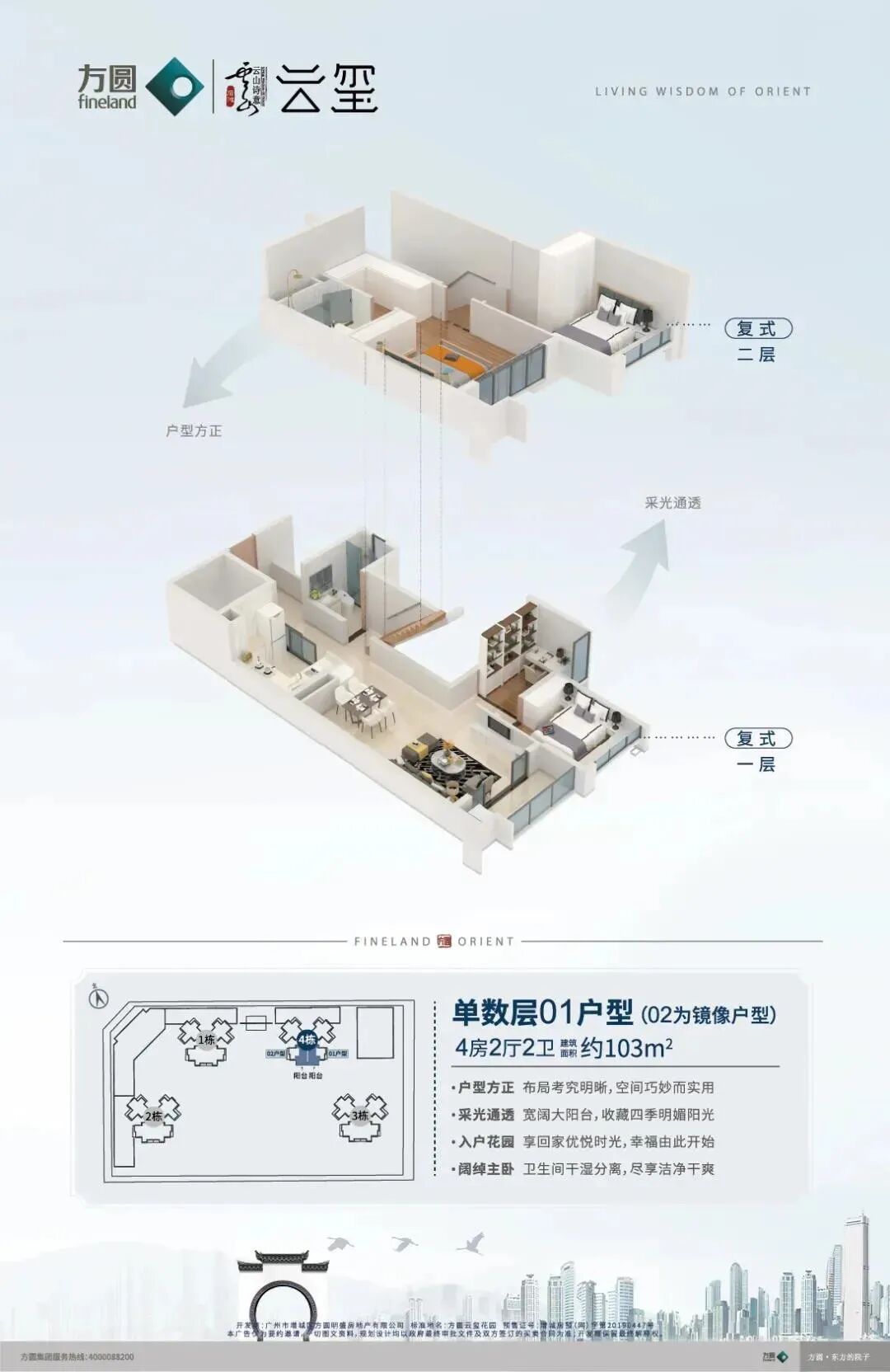 方圆云山诗意云玺匠心打造难得复式东方美宅,建面约93-103㎡小面积户型,高达110-120%使用率,买一层享两层,空间功能齐全,无论一家三口,还是二孩四口之家,抑或是三代同堂,均可满足舒适居住需求。