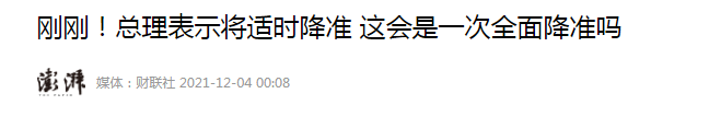国泰君安研究所宏观*席分析师董琦对财联社表示,如果12月财政支出不及预期,年底前就会降准。在跨年和春节资金面紧张阶段,或者明年1月信贷投放超预期,降准的可能性更大。