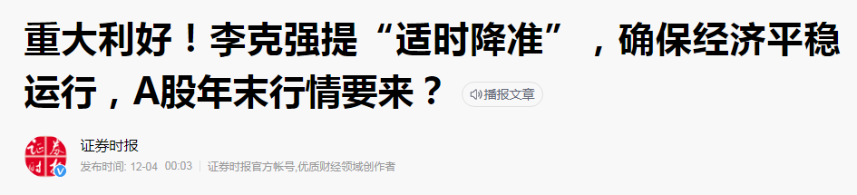 重大利好!总理表示将“适时降准”!