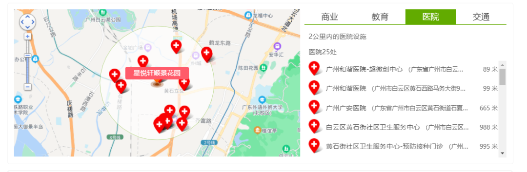 医疗:白云区*人民医院、白云区黄石医院、广州中医药大学*附属医院等