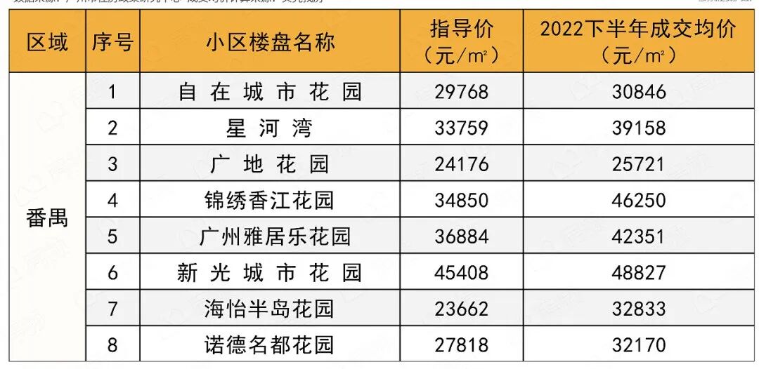”封印“取消,真价大白!2021年8月31日晚,广州公布了*批二手房指导价,涉及96个小区。在指导价的“封印”下,这96个指导价小区也经历了长达1年4个多月的“成交冷暖自知期”,真实成交价格在贝壳上无法显现!不过,随着楼市回暖、政策放开,贝壳已于前几日重新恢复了指导价小区的成交数据,这对向来爱看楼市“八卦”的蛋卷来说,自然不能放过!不扒不知道,一扒吓一跳!贝壳真实成交价隐藏期间,这96个指导价小区所在的五个区域,各自的表现还真是魔幻极了!成交价有的冲破天际,有的跌破指导价,还有的对比同期腰斩……我们逐区了解!以下数据来源:贝壳网天河区天河,指导价重拳出击的区域,官方实行指导价的96个小区中,就有54个来自天河。▲滑动长图查看天河54个小区指导价及近期成交均价但如今真实成交价重见天日,才知道谁在裸泳。像跑马地花园(指导价为40584元/㎡)、华景新城(指导价为55854元/㎡)、东圃广场(指导价为37985元/㎡)等天河小区,均出现跌破指导价的现象。部分小区成交价也出现明显回落,如天河公园的东方都会广场,2021年*热的时候一度接近10万/㎡。但*新成交的一套不到6万/㎡,2022年下半年成交均价在7万/㎡左右,价格回落明显。不过,有在贝壳扒真实成交价的朋友应该发现了,天河多数二手红盘的真实成交价格,受指导价影响并不大,有的甚*还涨了!比如尚东君御比去年同期成交单价上涨了约2万/㎡,兰亭盛荟上涨了约0.4-0.7万/㎡,盈彩美居上涨了约1万/㎡。而珠江新城板块的指导价小区,房价依然坚挺,甚*是翻倍的。保利心语花园,在指导价出台后那几个月,成交量和成交单价的确有明显的下滑。贝壳显示,二手指导价出炉后*2021年底,该小区只成交了1套房源,价格为11.2万/㎡。但到了近期,该小区成交价格恢复到指导价实行前水平,保持在12-17万/㎡,2022下半年成交均价更是达到了14.3万/㎡,比96957万/㎡的指导价高出不少。中海花城湾,指导价为92641元/㎡,但在2022年却有房源*次冲破20万+/㎡大关,近期成交价则是保持在17-21万/㎡之间,相比前年同期上涨了约3-5万/㎡,相比指导价更是翻了一倍不止。海珠区海珠7个被官方纳入二手指导价的小区,整体表现比较平稳,2022下半年成交均价均高于指导价。罗马家园,成交价仍维持在三年前的“4”字头。泓景花园,2022年下半年成交均价在8万+/㎡,*新成交价也大致在这个水平。珠江帝景,成交均价相比指导价,高了不少……越秀区越秀实行指导价的二手小区虽然只有4个,但却出奇的一致,多为学区房。因此,东风广场的小户型很好卖,指导价出台后仍有一套50㎡的1室1厅去到12万+,远超于指导价的81754元/㎡。锦城花园,去年也有1套房源成交价格突破12万,而在指导价出台前,也曾出现1套单价突破12万的房源。力迅东山雅筑指导价实行后并没有成交。而君汇世家自二手指导价出台后*今,虽然只成交了5套,但成交价却整体保持微涨,2022年下半年成交均价为12.9万/㎡。不过值得一提的是,在东风广场和锦城花园中,均有1-2套大户型跌破指导价。编辑认为这与相关户型不够方正,以及总价较高等因素有关。番禺区番禺8个指导价小区中,超一半出现房源跌破指导价。像广地花园自指导价出台后成交的57套房源中,就有9套是低于指导价挂牌出售的(该小区指导价为24176元/㎡)。而广州雅居乐花园*新一套成交,也是低于指导价36884元/㎡的。同样成交表现令人人大跌眼镜的,还有昔日红盘——万科欧泊(新光城市花园)。你敢相信,在一年多前,该小区*高成交价一度破6万了。但指导价实行后成交的40套房源中,却未有一个房源能冲出6万,且当中有6套房源跌破指导价。万科欧泊的官方指导价为45408元/㎡,但近期4万/㎡、4.3万/㎡等低于指导价成交的房源屡见不鲜。锦绣香江花园除了实际价格本身就比指导价低的布查特官邸组团房源,其他房源都在指导价以上,表现并不算太意外。黄埔区*于黄埔,其实很多小区成交价,很早就跌破了指导价,如丰乐小区、万科城市花园、黄埔新村等。更值得一提的是,近期还有越来越多小区加入了跌破指导价的队伍。如万科金色悦府在一年多前成交价曾去到6万+,近期却有1套房源开始低于指导价成交(该小区指导价为45294元/㎡)。锦林山庄,*新一套成交为26895万/㎡,而其指导价为28056元/㎡。万科新里程,指导价为33601元/㎡,其2021年4月有房源成交价格达4.7元/㎡,但*新成交的房源价格同样开始低于指导价。不过黄埔也有逆市而上的,如雅居乐富春山居、万科城等,成交房源价格均高于指导价,且雅居乐富春山居*新成交的房源价格还逼近2021年初的成交*高价。万科城则是在指导价期间刷新了小区*高成交价。各区盘点暂且到这。当然,如果你在2023年有二手置业计划,那么以上这些楼盘,不管买不买,都值得看一看! 来源:广州房产之家