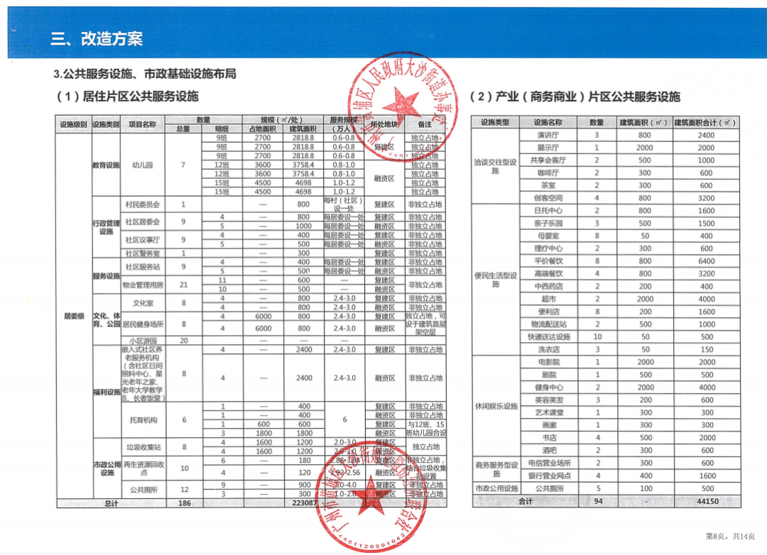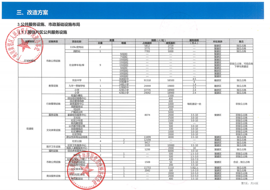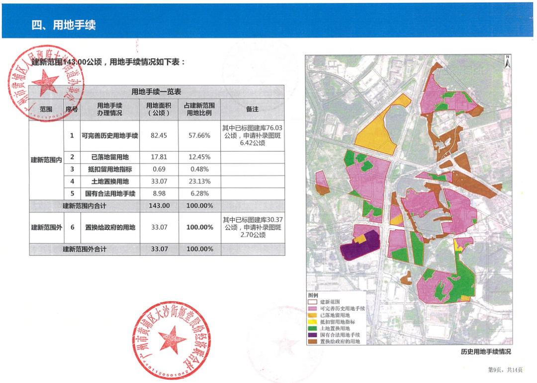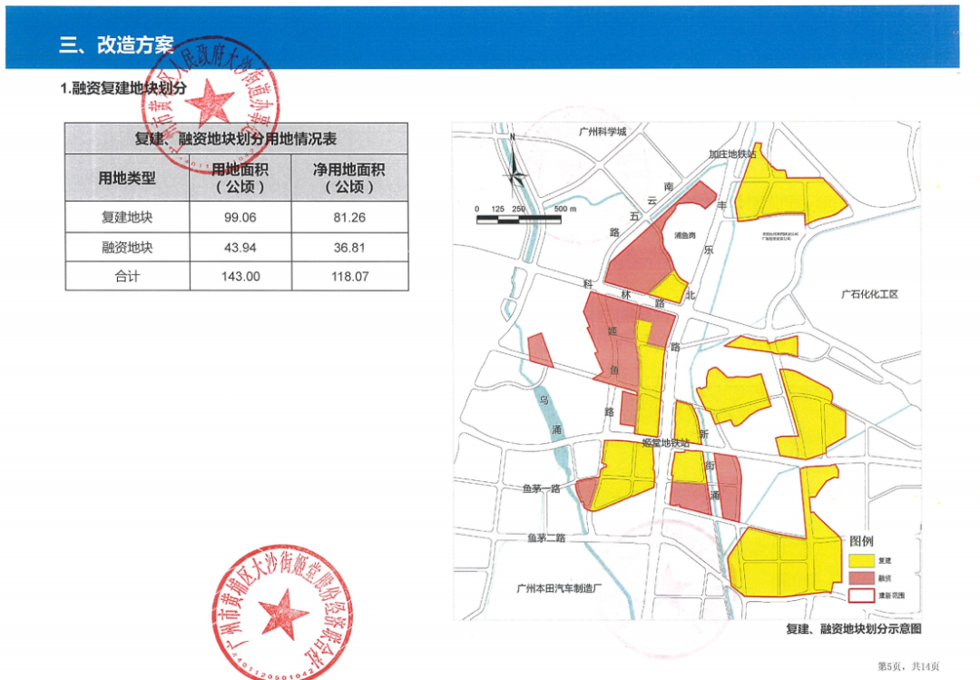 用地类型:复建地块用地面积99公顷,融资地块44公顷