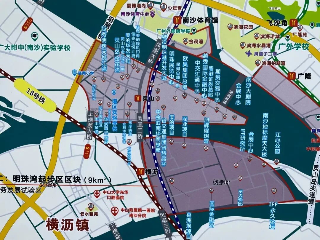 以庆盛枢纽*为起点,沿着黄阁、明珠湾、万顷沙方向延伸,一路形成了一个脉络清晰的南沙*片区发展轴。