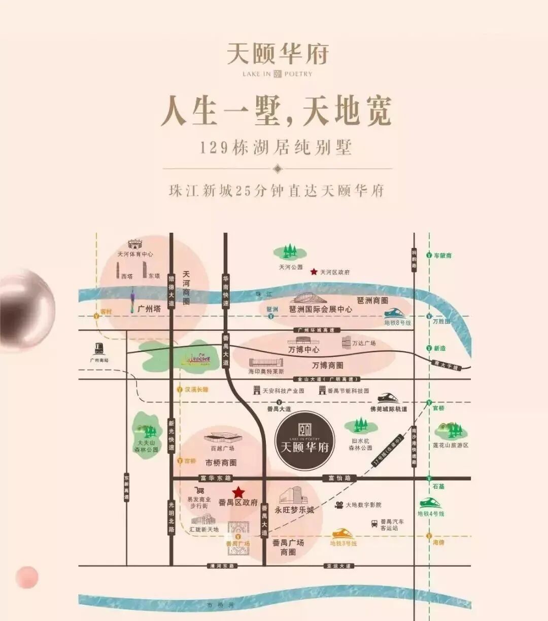 作为番禺广场板块*纯别墅,天颐华府于天赋地脉之上,集萃一城精华。北接广州第四CBD万博板块,南承对外开放门户枢纽南沙自贸区,东靠番禺创新经济与产业开发板块,西连南站板块。