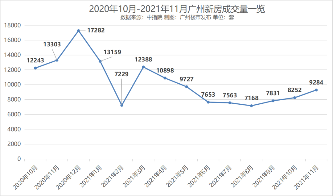 在11月,广州新房成交约9284套,环比涨幅达12.5%,重回9000大关。