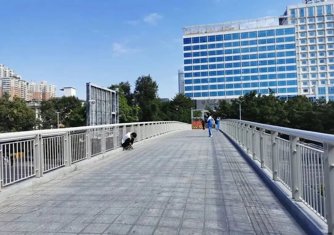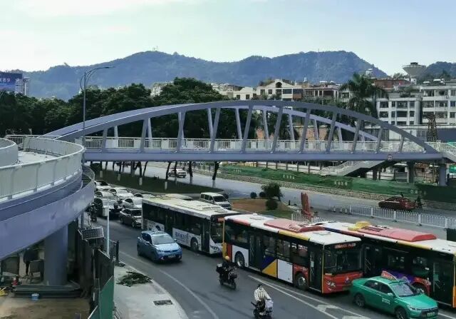 该桥全桥总长为60.79米,于2020年12月20日进场施工,目前已完工并投入使用。天桥设计简约,桥面视野开阔,两侧上下桥口宽敞,楼梯*设置了“推车”斜坡,方便自行车和电动车上下天桥。