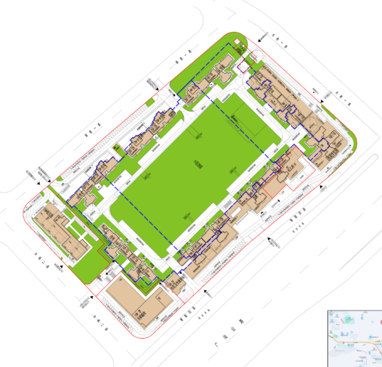 项目总占面52238㎡,容积率2.0,建筑密度为19.5%,绿地率为36.85%。