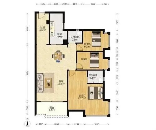 3、三间卧室,适合三代同堂居住,改善一步到位;