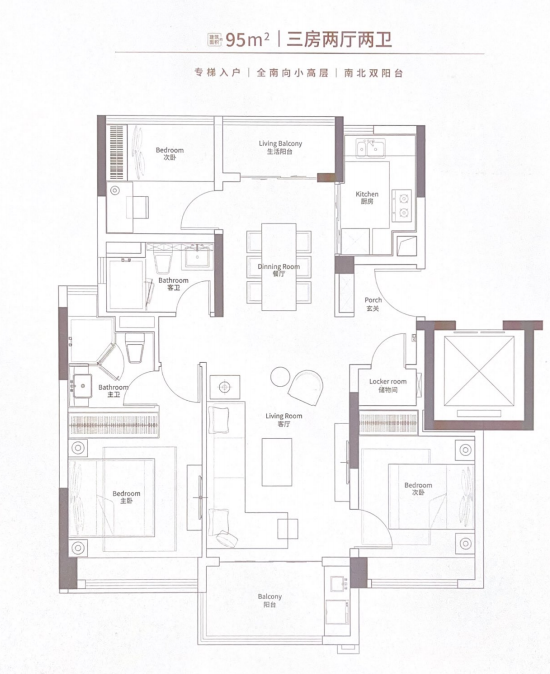 小高层洋房,约9-11层,有建面约95㎡的3房2厅2卫,和建面约125㎡的4房2厅2卫,全部采用纯板式结构设计,面宽大、进深短,通风采光俱佳: