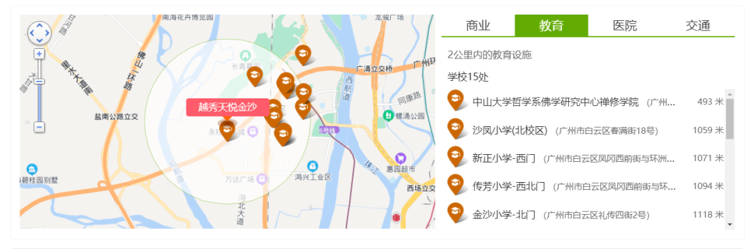 学校:金沙*幼儿园、金沙第二幼儿园、广附实验小学(*)、广大附中实验中学(初中)、华侨中学(初中)。
