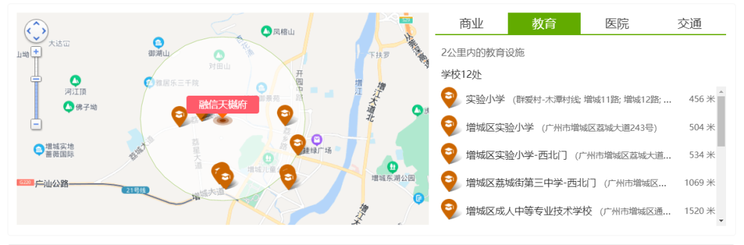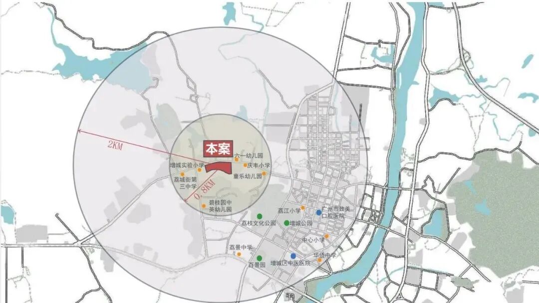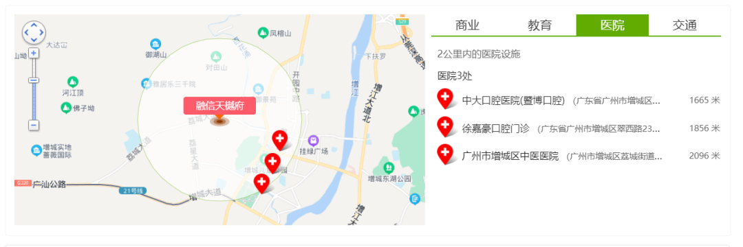 医疗:增城区中医院、增城妇幼保健院、荔城医院、广州妇幼保健中(在建中三甲医院)。