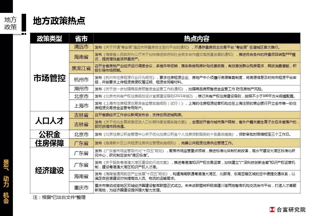2)房地产项目并购融资政策明确,央行、银保监会发文*支持优质房企并购出现经营风险的房地产企业优质项目,护航行业良性发展。