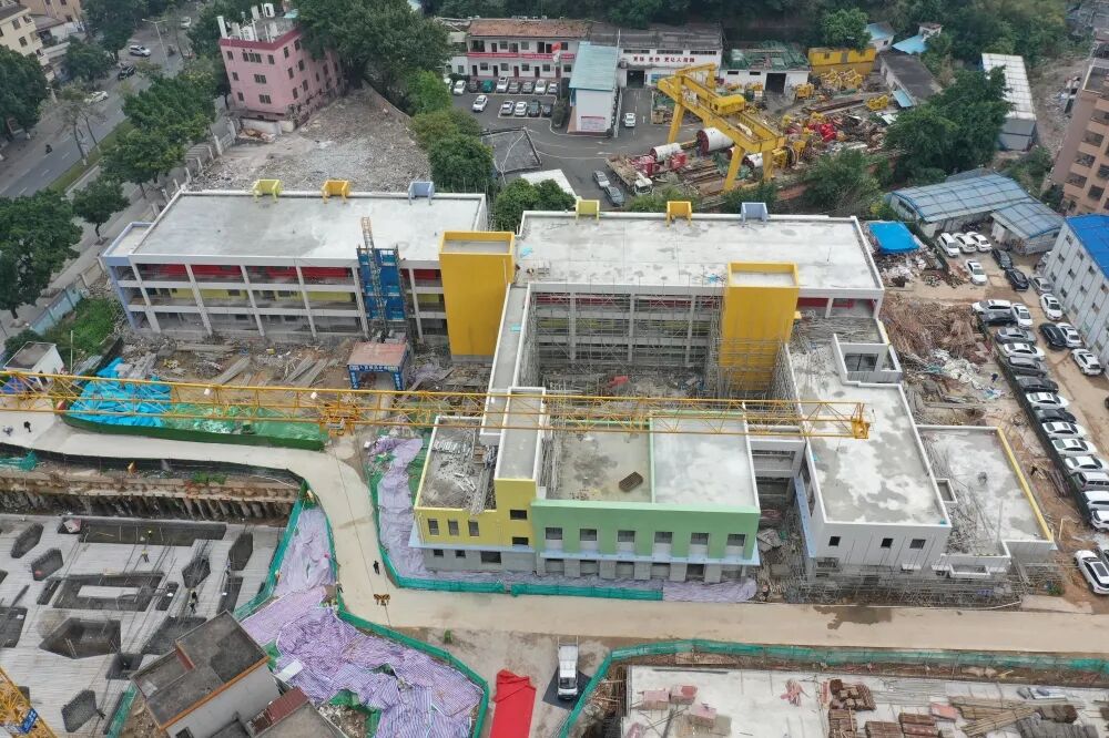 在封顶仪式现场环顾四周,除复建房稳步推进外,学校、复建商业等配套工程也在快马加鞭施工。大涌湾地块幼儿园、中小学已经进入竣备阶段,江贝地块幼儿园脚手架正在拆除,色彩缤纷的建筑外墙,仿佛看到了未来茅岗子弟活泼温暖的受教环境。