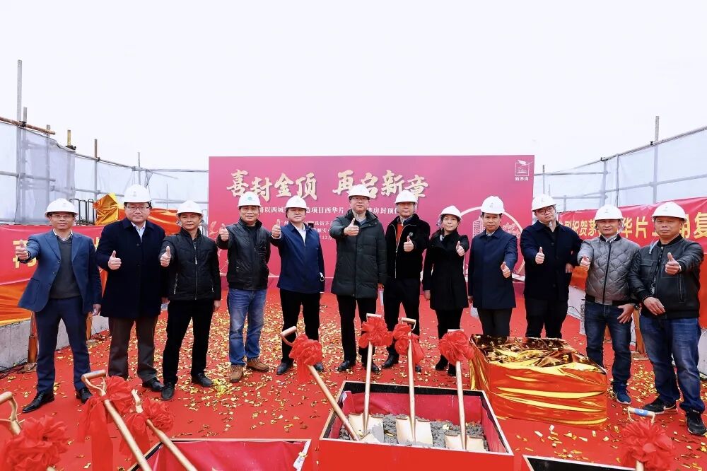 紧接着,各方领导为复建房浇筑*后一方混凝土,现场礼花绽放、爆竹声声,标志西华片二期复建房正式封顶。