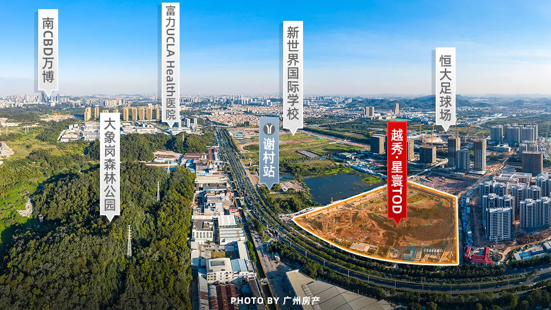 番禺的南站和万博板块之间再上新货,新盘(越秀星寰TOD)离7号线谢村地铁站仅约300米,颇受众人瞩目。