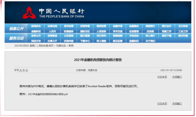 - 央行:2021年金融机构贷款投向统计报告